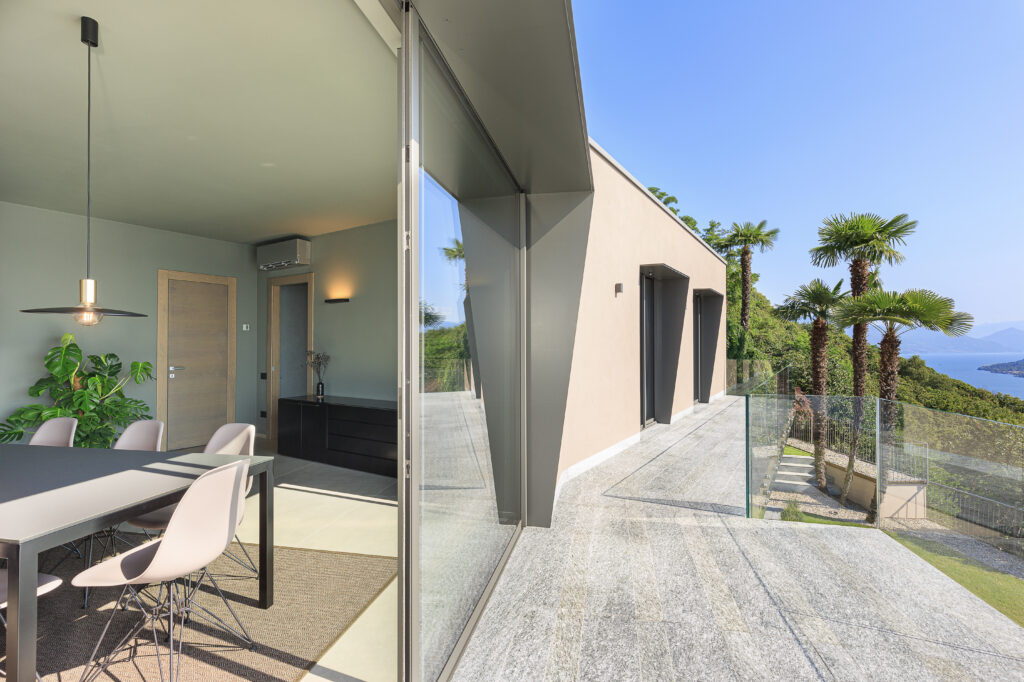 Villa Falcone, situata sulle suggestive alture di Magognino, rappresenta un progetto di altissimo livello che unisce lusso e architettura contemporanea. L’intervento ha trasformato una villa storica del primo ‘900 in una residenza moderna, massimizzando l’eccezionale vista sul Lago Maggiore.